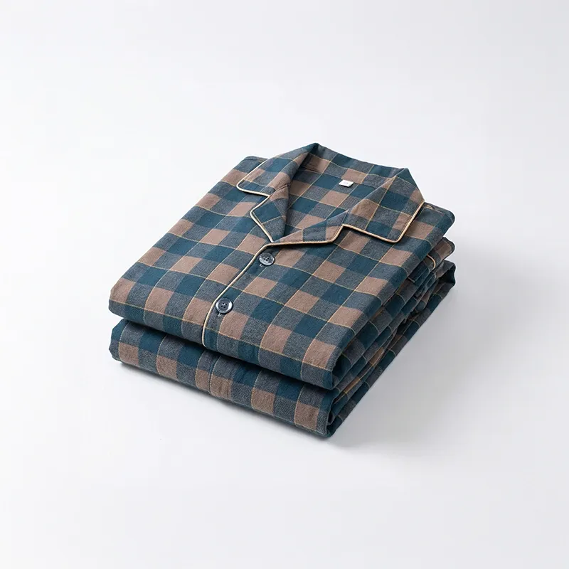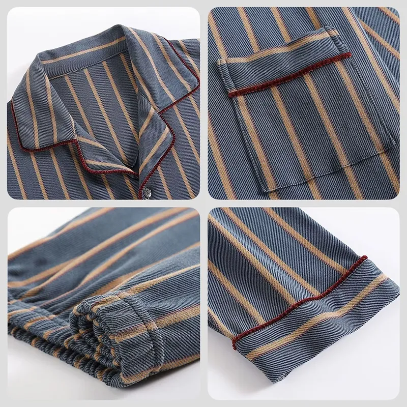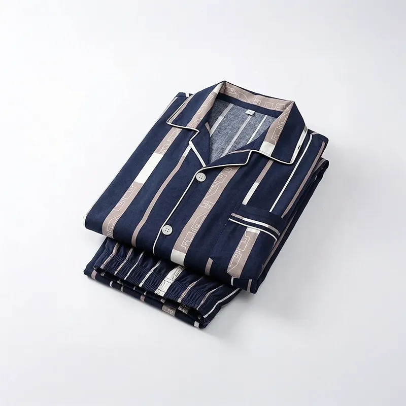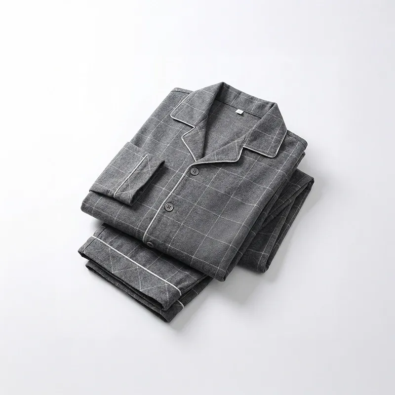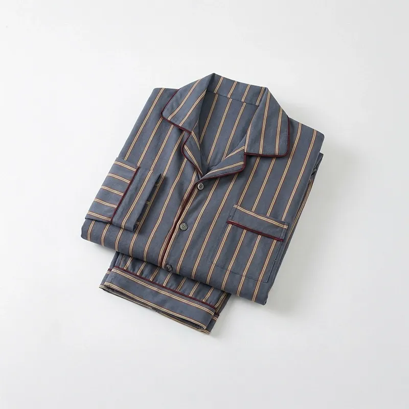 Herren-Pyjama-Set mit Knopfleiste, langärmlige Nachtwäsche
