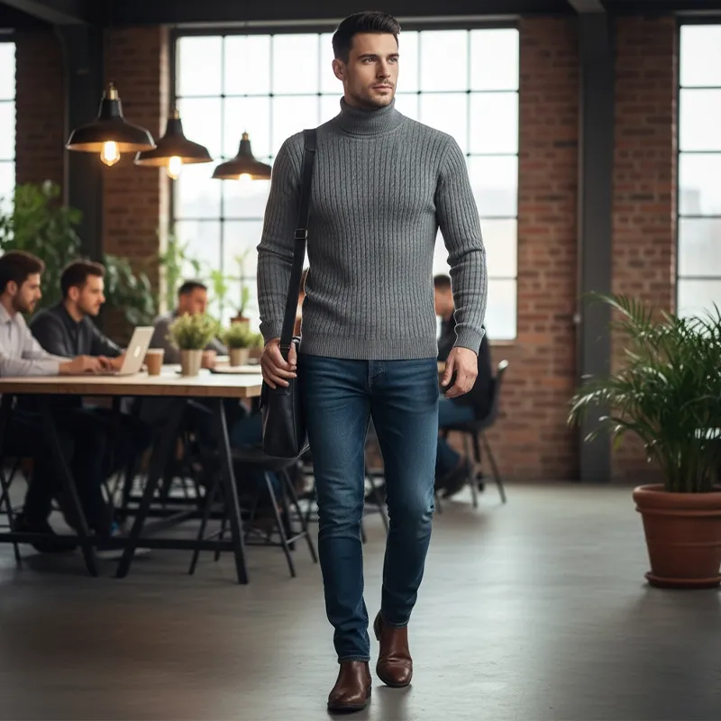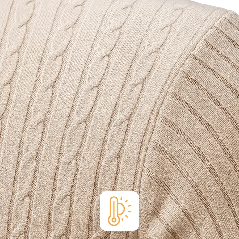 Gefertigt aus hochwertigen Fasern bietet dieses Strickteil zuverlässige Isolierung gegen kühle Winde. Ein hoher Kragen schützt effektiv und hält die Wärme, wenn die Temperaturen sinken. Der Stoff fühlt sich angenehm weich auf der Haut an und sorgt für langanhaltenden Komfort während Ihrer täglichen Routine. Das vielseitige Design lässt sich problemlos zu lässigen und formellen Looks kombinieren. Robuste Nähte sorgen dafür, dass die Form auch nach dem Waschen erhalten bleibt und vermitteln bei jedem Tragen ein Gefühl von Qualität.