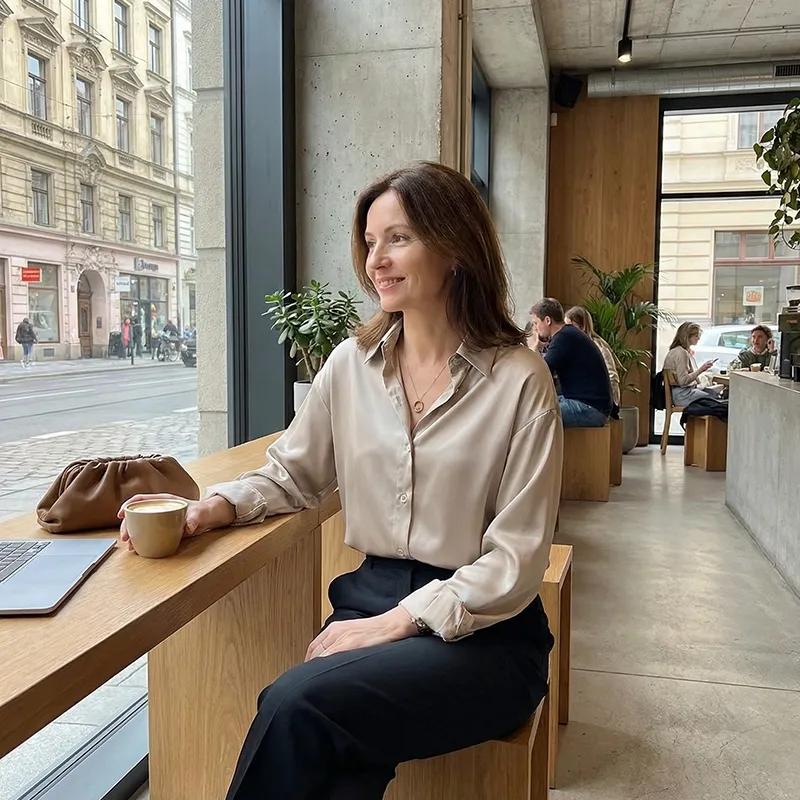 Die Bluse passt zu allem in meinem Kleiderschrank, von Röcken bis zu Jogginghosen. Sie bleibt den ganzen Tag bequem und sieht trotzdem für abendliche Pläne stilvoll aus.