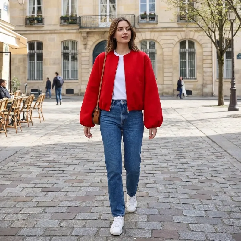 War mir zuerst nicht sicher, aber die Bomberjacke passt perfekt und bleibt auch nach häufigem Tragen in Form. Sie ist super flexibel, egal ob beim Erledigen von Besorgungen oder beim Entspannen.