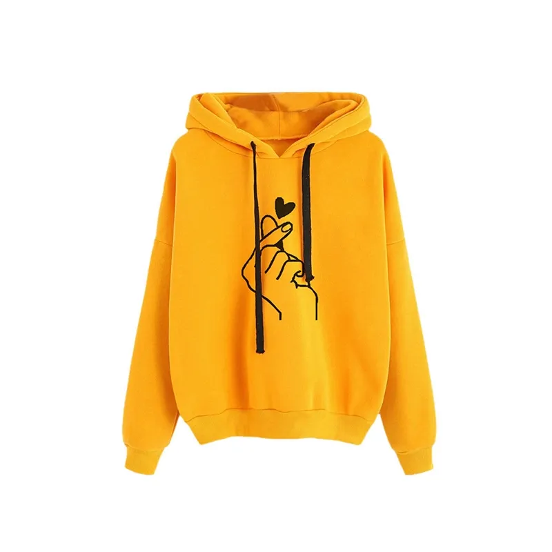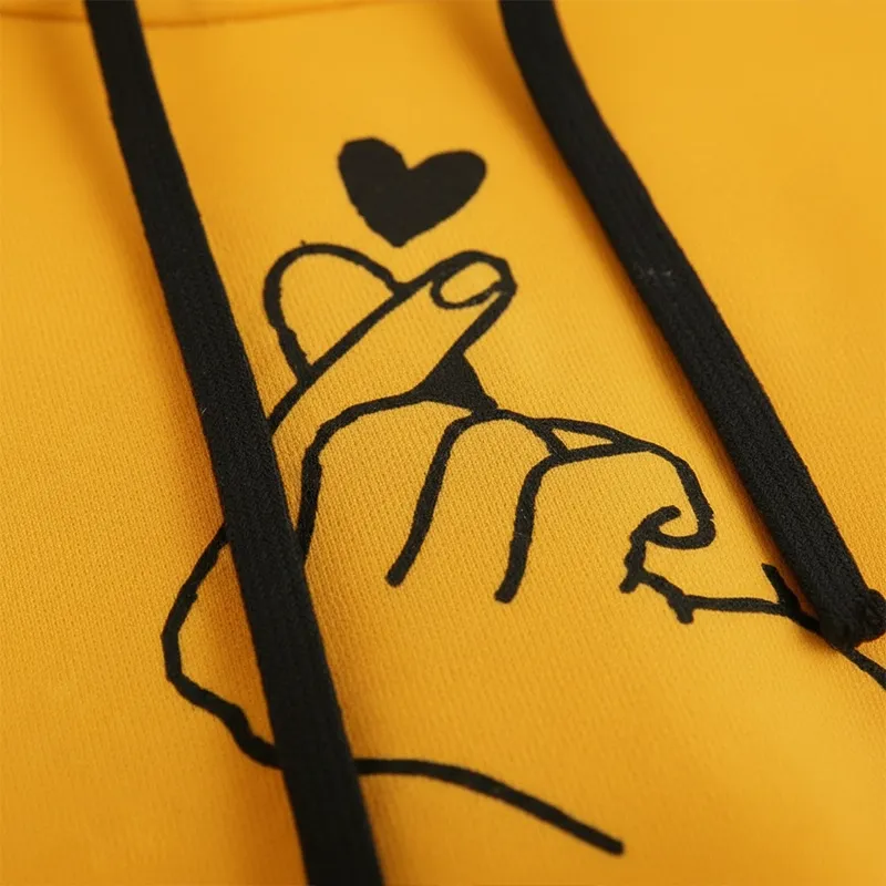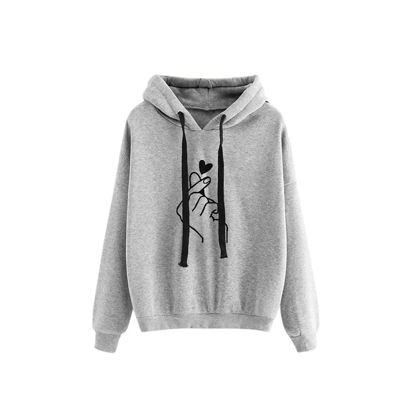 Dieser Hoodie hält Sie an kühlen Tagen warm, ohne unnötiges Gewicht. Das weiche Fleece-Material fühlt sich angenehm auf der Haut an und sorgt für Wohlbefinden überall. Der lockere Schnitt ermöglicht einfaches Layering und macht ihn zur vielseitigen Wahl für legere Anlässe. Ein entzückender Fingerherz-Print bringt fröhlichen Charakter in Ihre Garderobe und sorgt sofort für gute Laune. Genießen Sie Funktionalität und zugleich einen spielerischen Akzent beim Tragen dieses Hoodies.