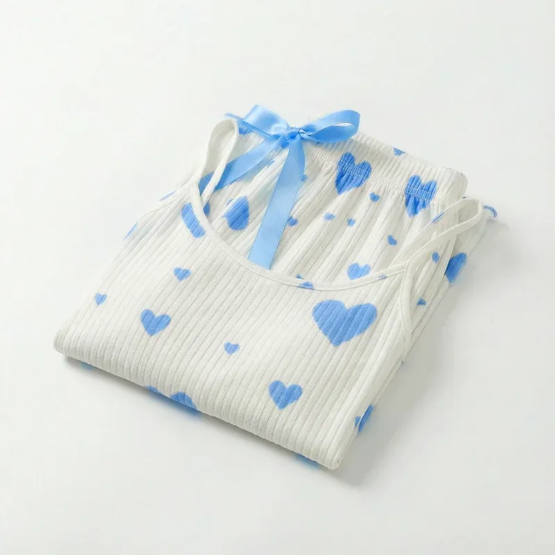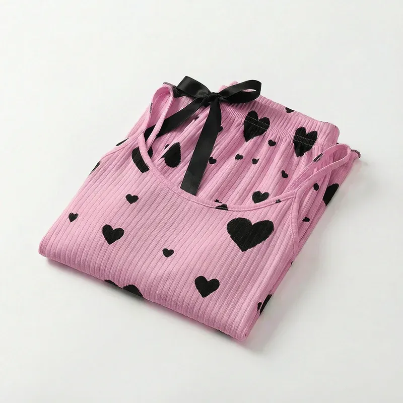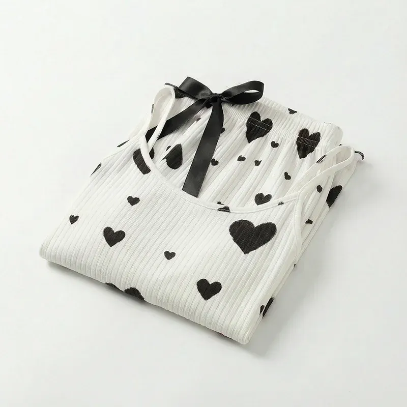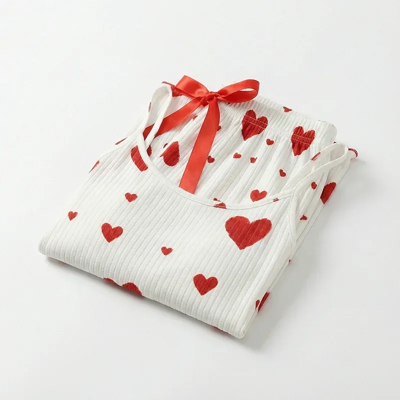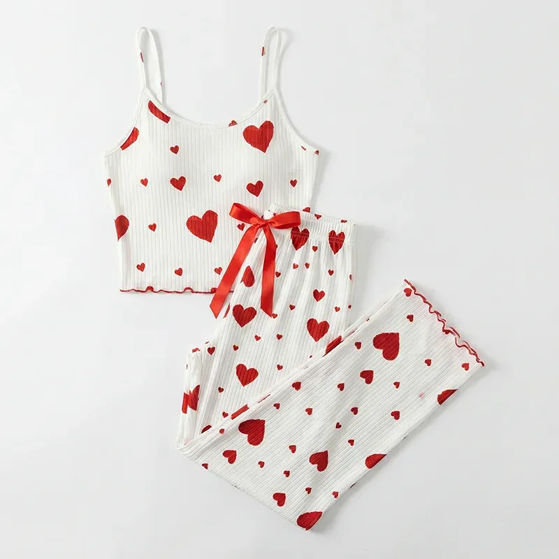 Damen Schlafanzug-Set mit Tank-Top und Hose mit Herz-Print