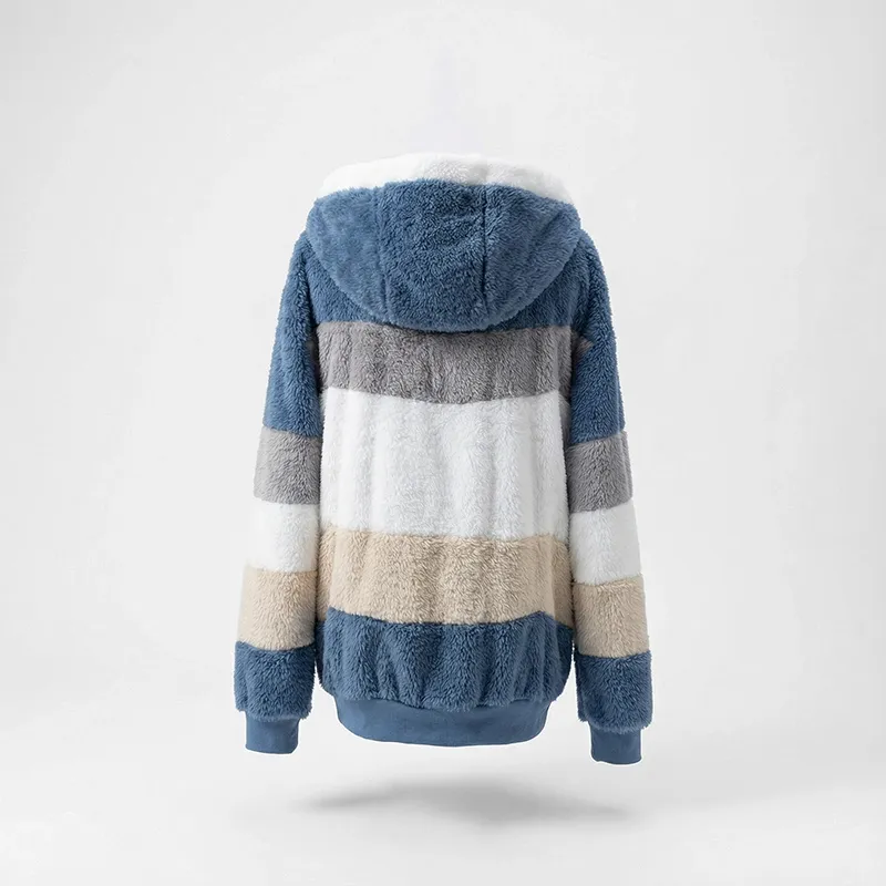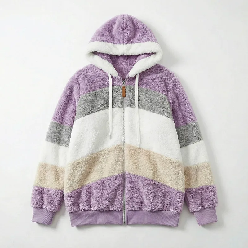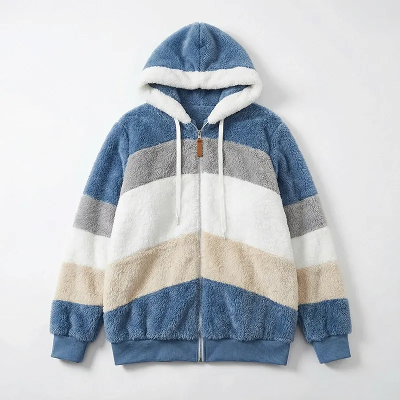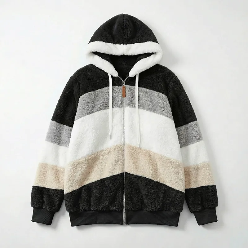 Diese kuschelige Kapuzen-Plüschjacke hält Sie in kalten Jahreszeiten warm und strahlt Gemütlichkeit aus. Das luxuriöse Fellfutter sorgt für langanhaltende Isolierung – ganz ohne viel Volumen oder unangenehmes Tragen. Sie bietet wolkenweiche Behaglichkeit auch bei härtesten Winterbedingungen. Die großzügige Kapuze schützt vor schneidendem Wind, während der Kragen zusätzlichen Schutz bietet. Das Oversize-Design ermöglicht einfaches Layering und uneingeschränkte Bewegungsfreiheit.